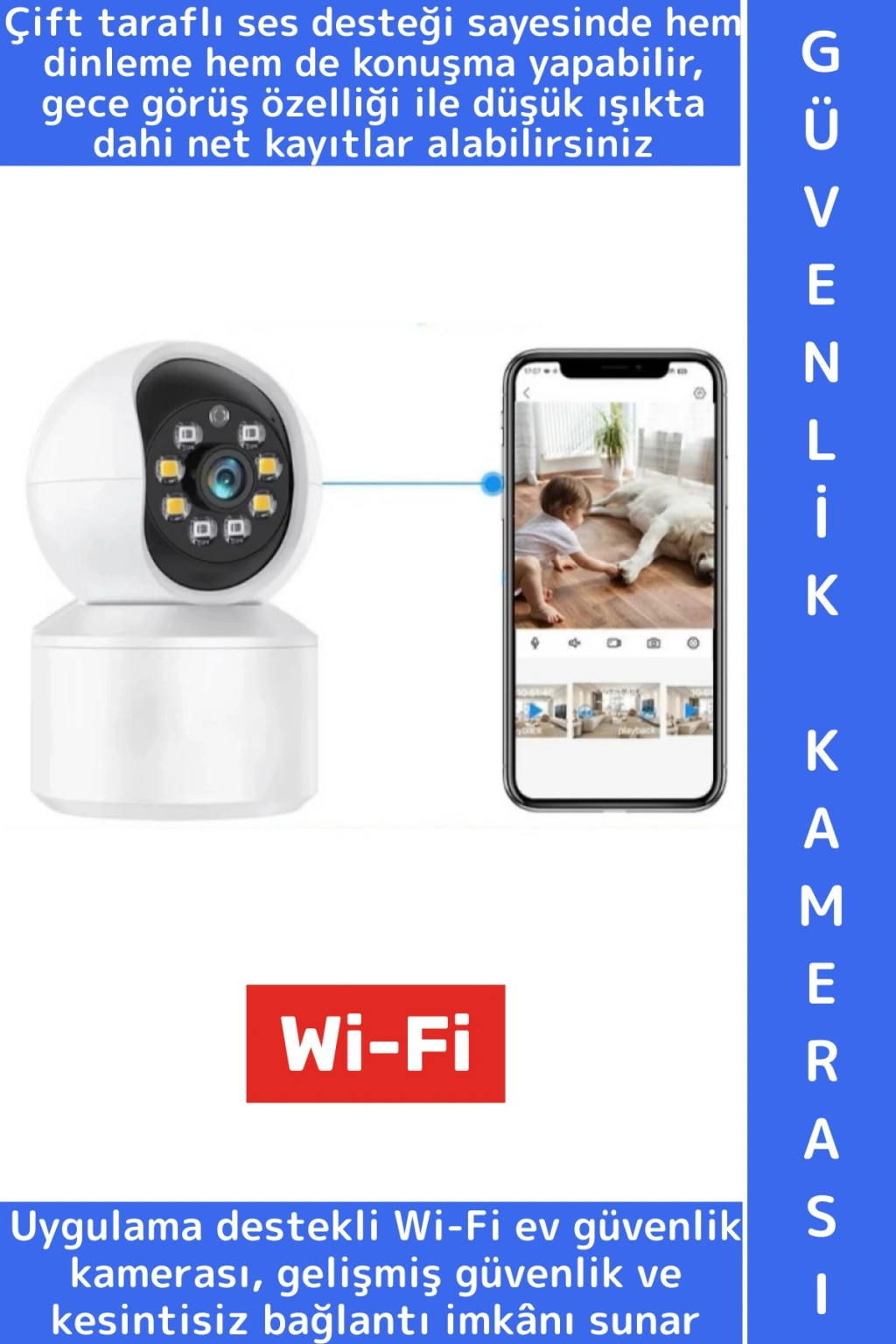 İç Mekan Ev Gece Görüş İki Yön Ses Hareket Algı Uyarı Bildirim Wi-Fi Çift Lensli Güvenlik Kamerası
