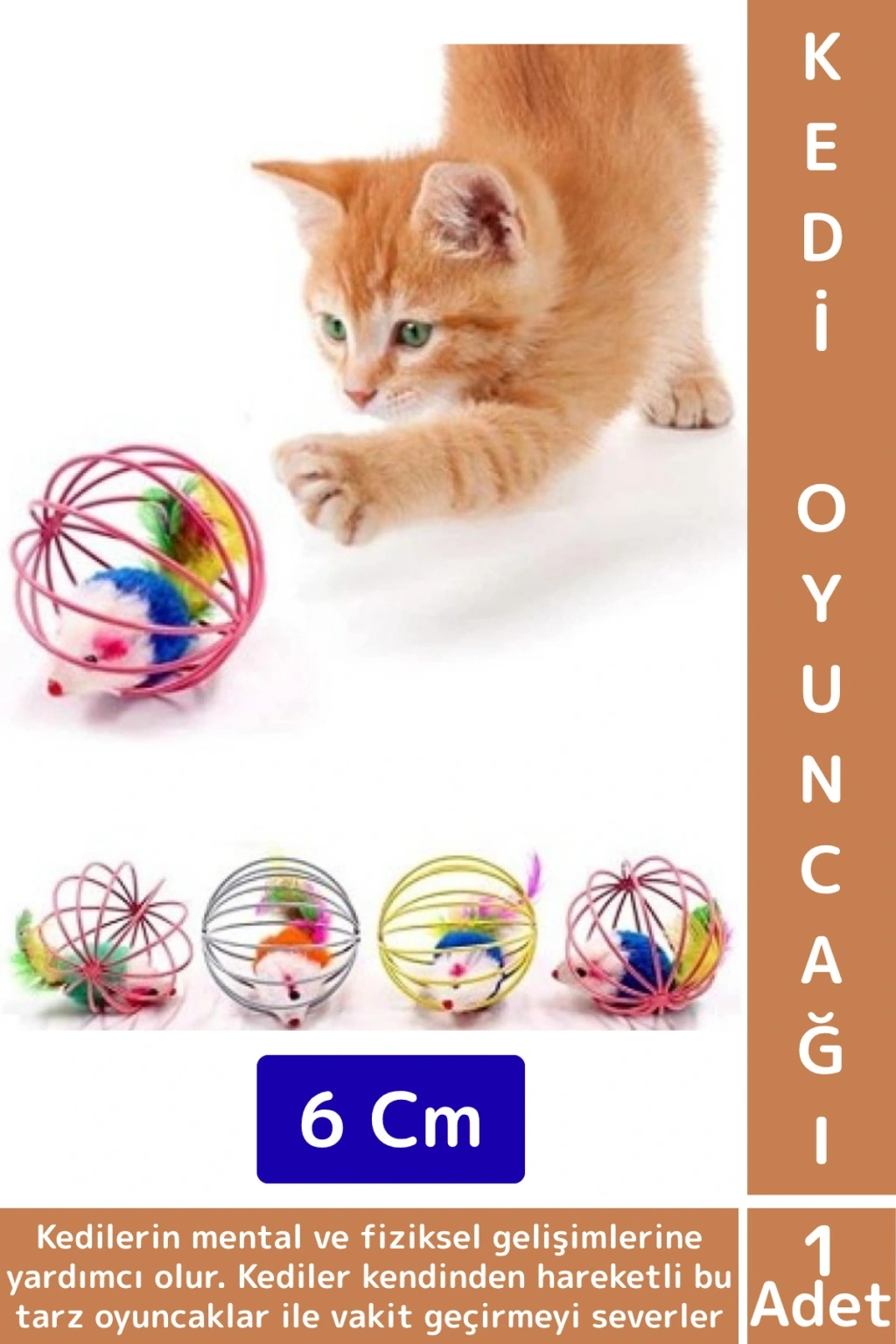 1 Adet Kafesli Renkli Fareli Kedi Köpek Oyun Topu 6 cm
