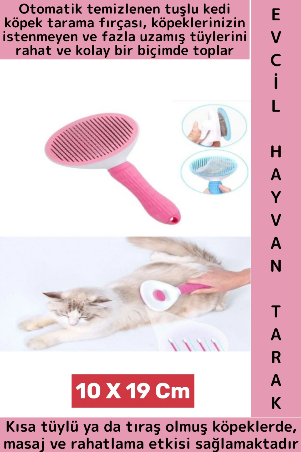 Üstte bulunan tuşa bastığınızda telli kısımlarının çıktığı bir tarak olan bu alet, ev hayvanlarınızın karışan tüylerini kolaylıkla açabilmektedir.