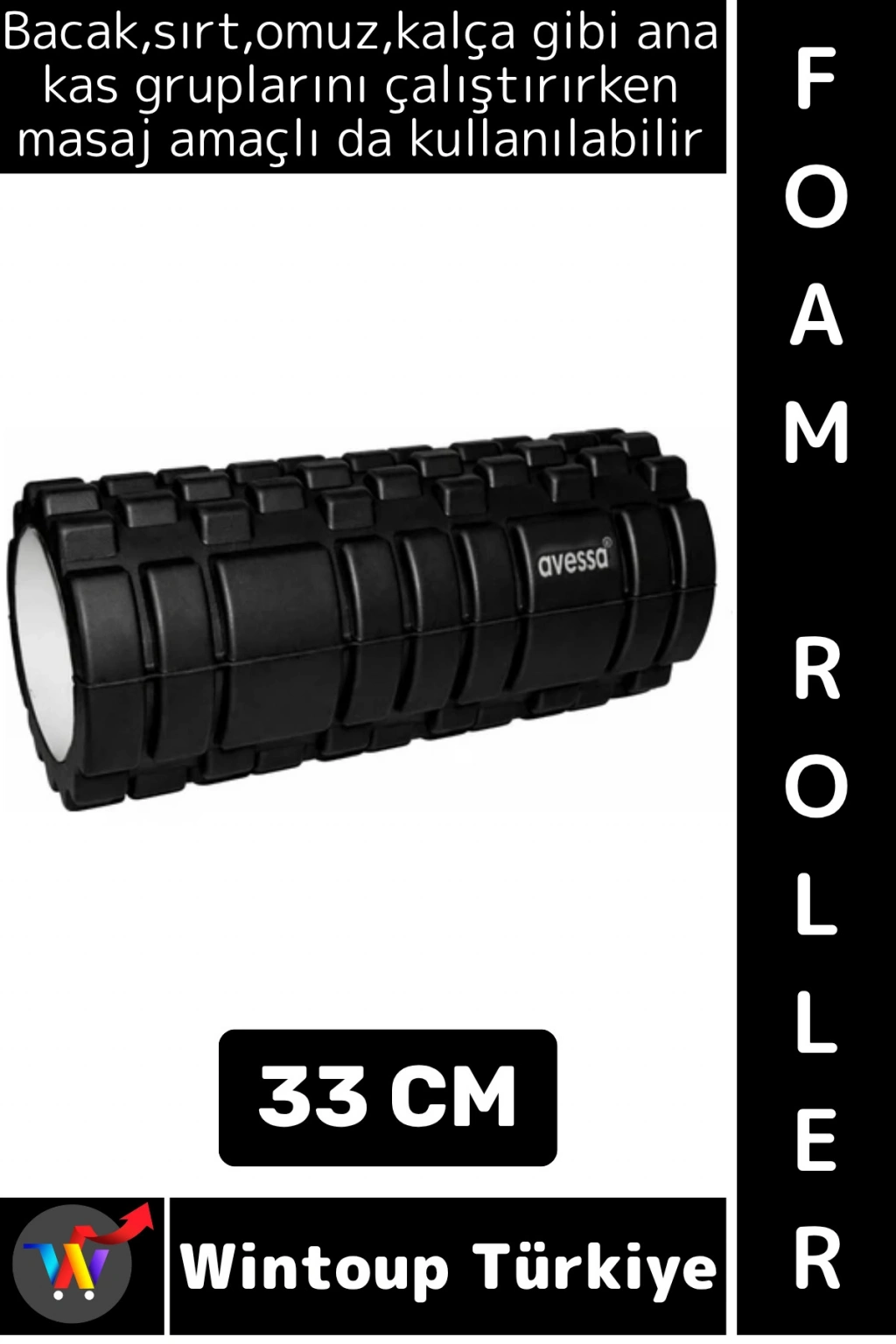 Bacak, sırt, bel, kalça ve omuz bölgelerinde kullanıma uygun olan foam roller, kas sertliğini azaltmaya ve kan dolaşımını artırmaya yardımcı olur.