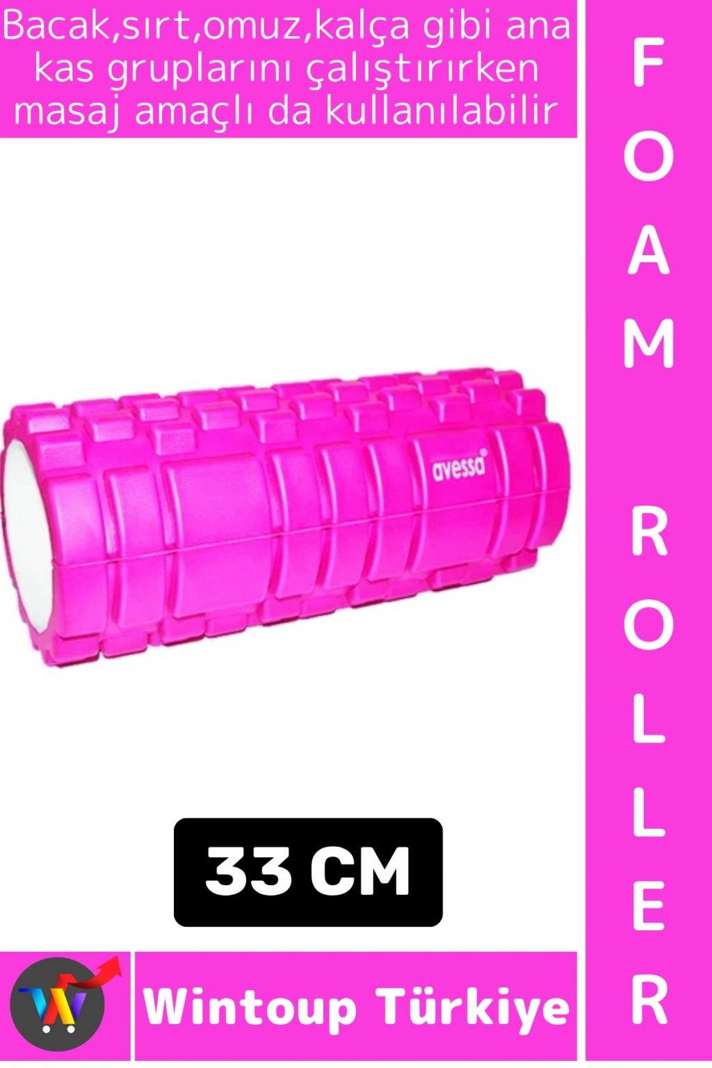 Bacak, sırt, bel, kalça ve omuz bölgelerinde kullanıma uygun olan foam roller, kas sertliğini azaltmaya ve kan dolaşımını artırmaya yardımcı olur.