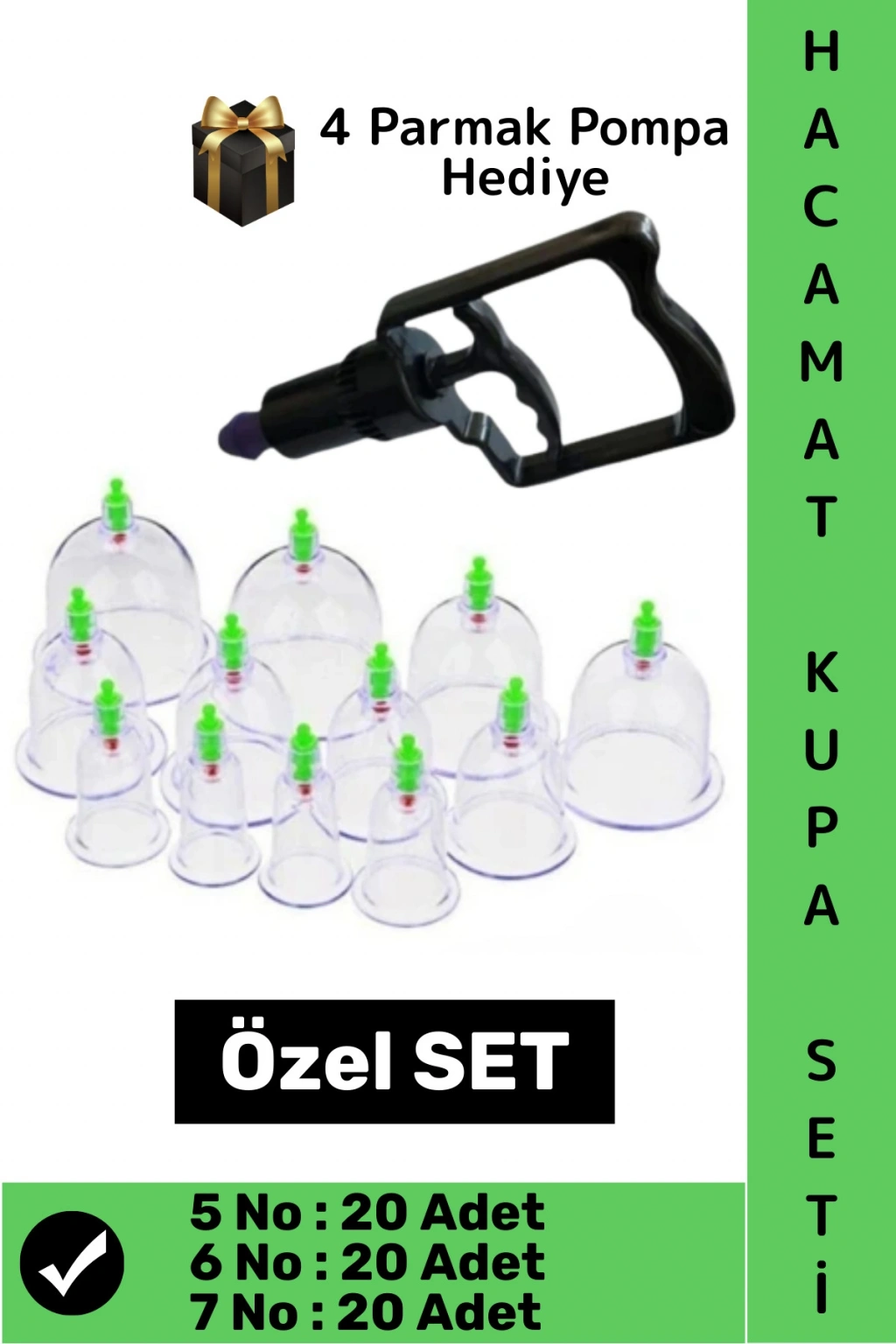 #HacamatSeti 20 Adet 5-6-7 No Kupa Islak Kuru Kullanıma Uygun 4 Parmak Pompa Hediyeli Hacamat Seti