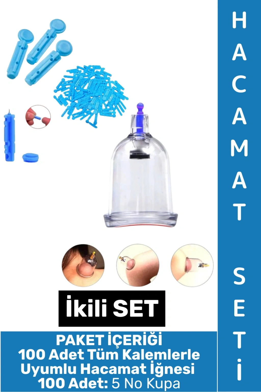 #HacamatSeti Tüm Kalemlerle Uyumlu Parmak Delme 100 Adet İğne 100 Adet 5 No Kupa İkili Hacamat Seti