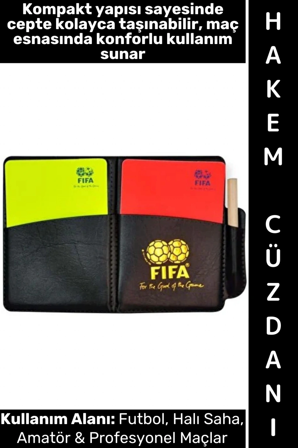 Cüzdanlı Hakem Kartı, futbol ve diğer saha sporlarında görev yapan hakemler içinpratik, dayanıklı ve kullanışlıbir set olarak tasarlanmıştır. Set içerisinde yer alansarı ve kırmızı kartlar, maç sırasında hızlı ve net kullanım imkânı sunar.