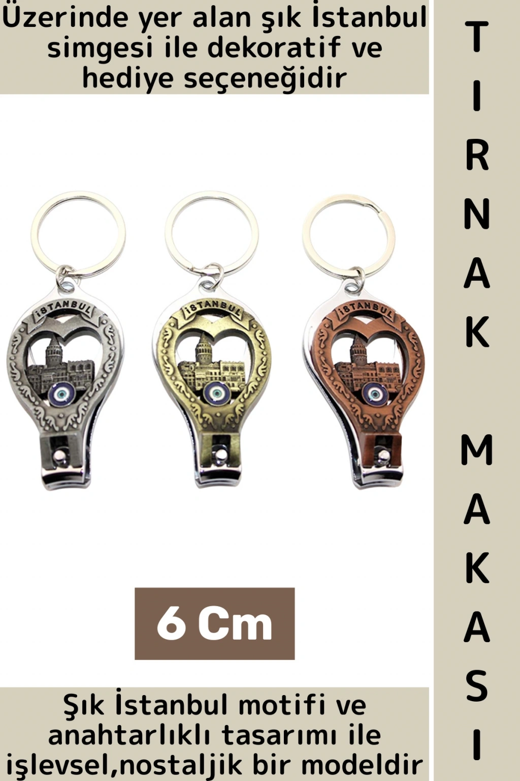 Hediye Dekoratif Kişisel El Ayak Bakım Şık İstanbul Temalı Anahtarlık Tasarımlı Tırnak Makası 6 Cm