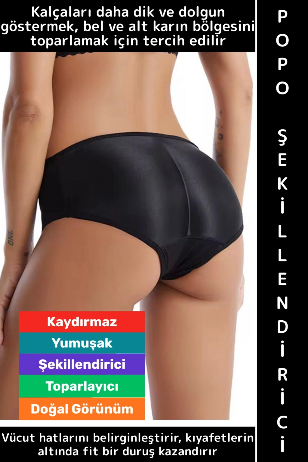 Kalçaları yukarı doğru destekler, daha dik ve yuvarlak görünüm sağlar.