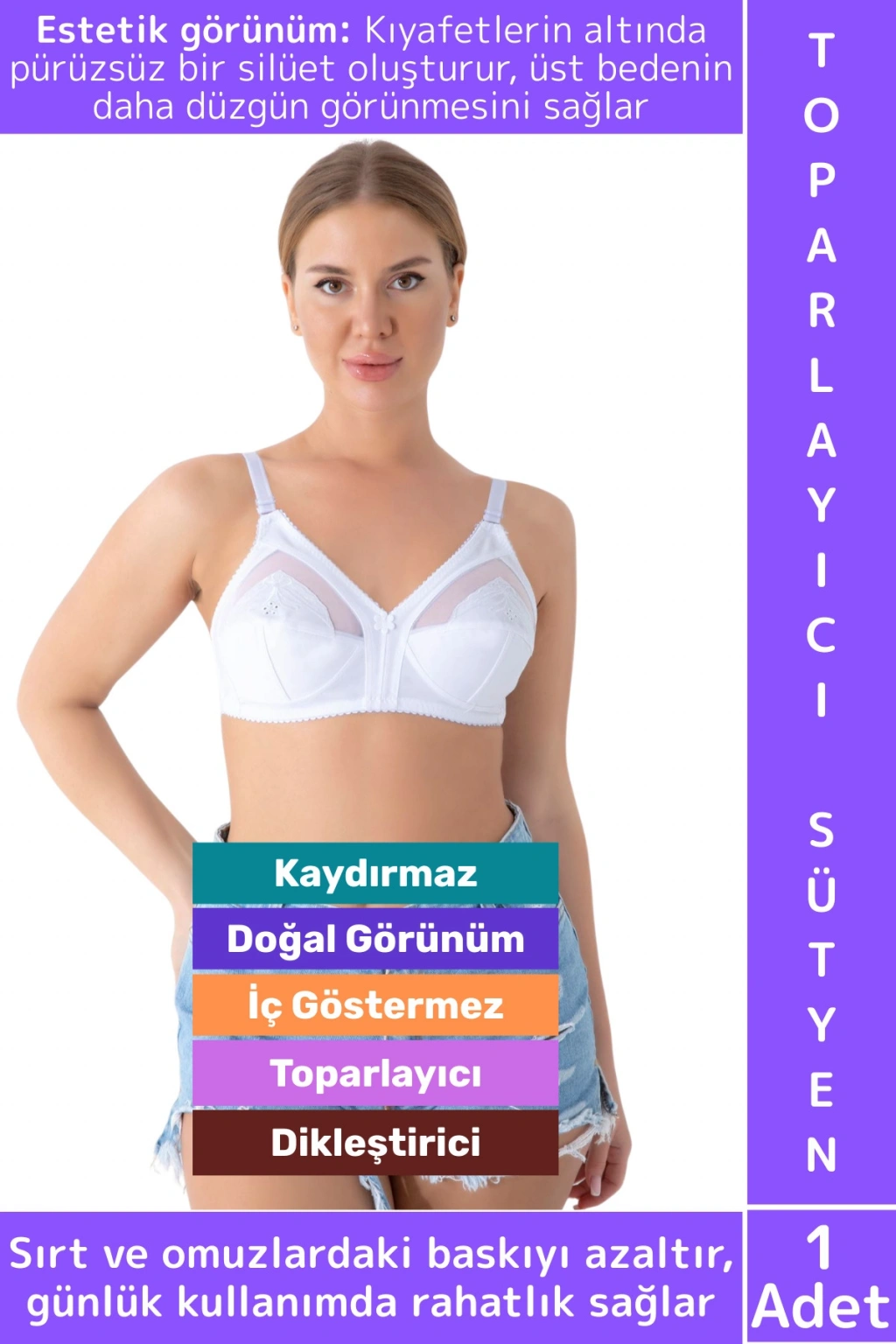 Konfor: Büyük göğüslere sahip kadınlarda sırt ve omuzlardaki baskıyı azaltır, günlük kullanımda rahatlık sağlar