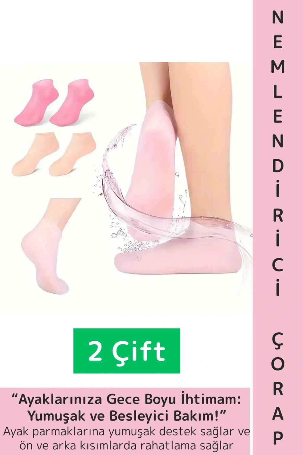 Silikon Jel Ayak Nemlendirici Çoraplar, ayaklarınıza gece boyunca nemlendirici ve rahatlatıcı bir bakım sunar. Nemlendirici çoraplar, ayak parmaklarına yumuşak destek sağlar ve ön ve arka kısımlarda rahatlama sağlar. Elastik ve deforme olması zor olan bu çoraplar, harika bir tasarım ve mükemmel işçilik sunar, sızdırmazlık sağlar ve besleyici özellikleriyle dikkat çeker. Silikon yapıdaki bu çorapları, ayak bakım jelini uyguladıktan sonra gece boyunca giyerek, jelin ayaklarınıza etkili bir şekilde nüfuz etmesini sağlayabilirsiniz. Kolay kullanımı ve çoğu kadın ayak ölçüsüne uyacak şekilde esnek yapısı ile pratik bir güzellik bakımı sunar.