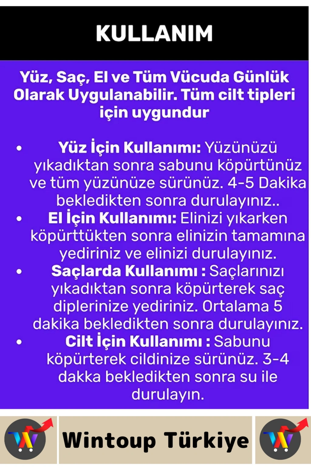 Ciltte renk dengelemek için kullanılan bu sabun düzenli kullanımda cilt tonunu açabilmektedir.