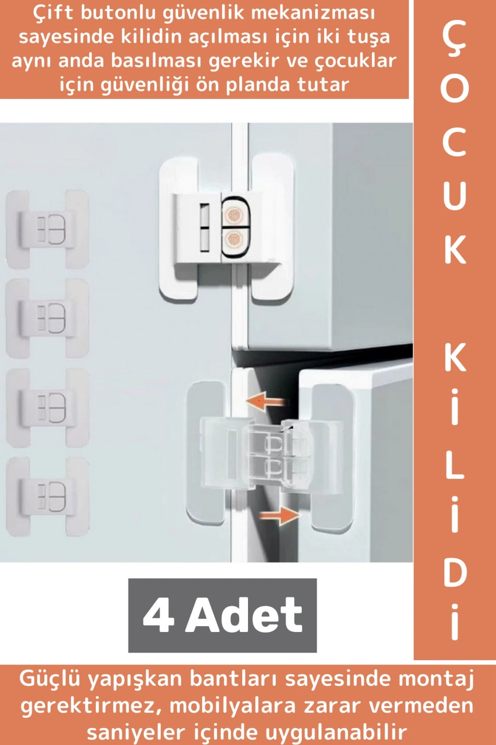 4 ADET BUZDOLABI ÇEKMECE VE DOLAP KAPAĞI ÇOCUK KİLİDİ