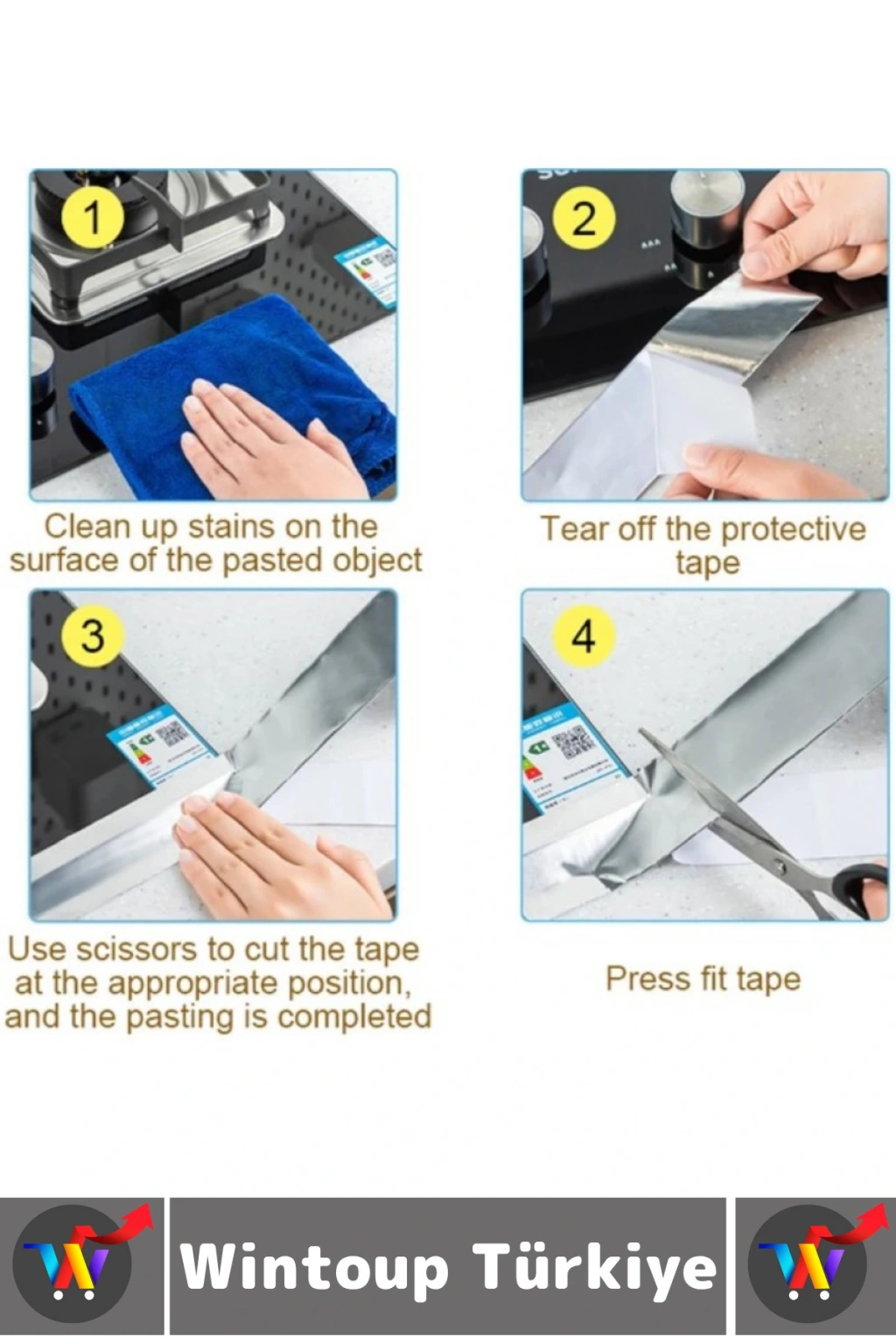 Alüminyum su geçirmez koruma bantı ocak kenarı, lavabo ve ihtiyaca göre boşluklar için uygundur.