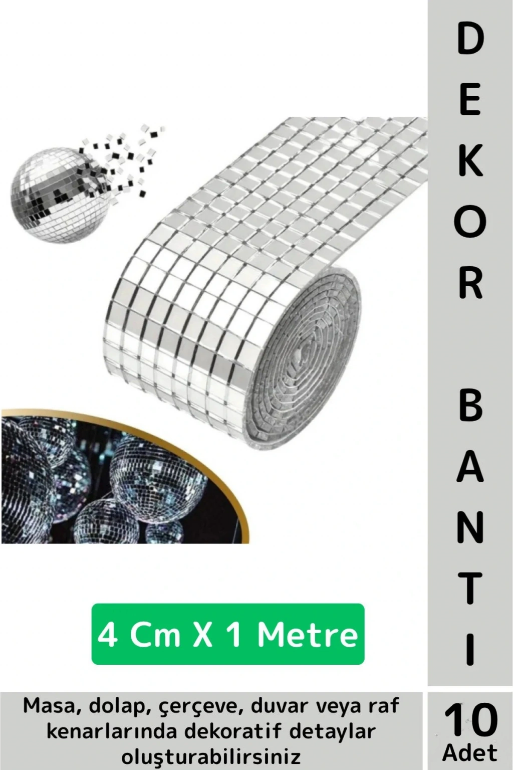 GÜMÜŞ RENK AYNALI DEKOR BANDI KENDİNDEN YAPIŞKANLI 1 METRE X 4 CM