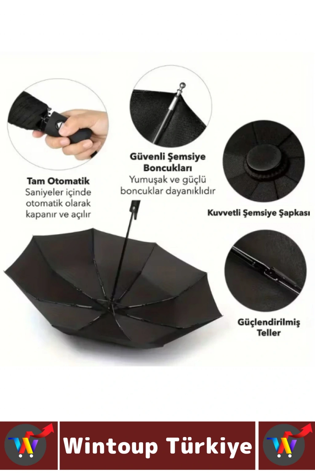 Tek tuşla otomatik açılma sistemi, ani yağmurlarda hızlı kullanım imkânı sağlar. Güçlendirilmiş 8 telli yapısı, rüzgârlı havalarda dayanıklılık sunarken, su geçirmez kaliteli kumaşıyla yağmurdan tam koruma sağlar. Ergonomik sap tasarımı rahat bir tutuş sunar, kendi kılıfı sayesinde şemsiye temiz ve düzenli şekilde saklanabilir. Hem günlük kullanım hem de seyahatler için ideal bir tercihtir.