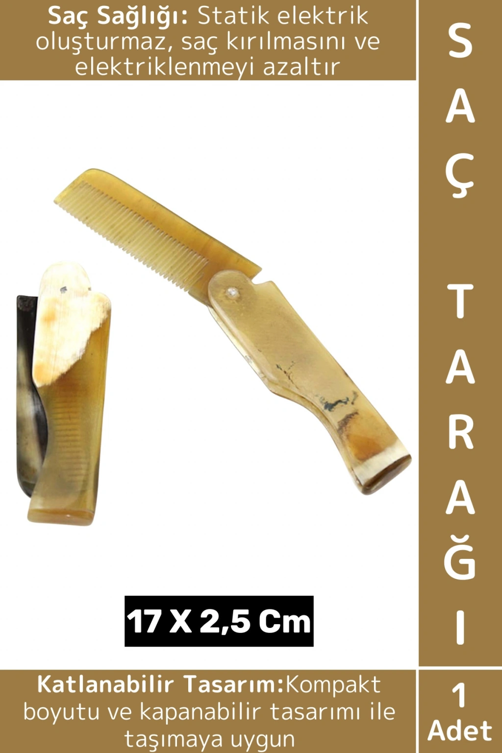 Doğal kemikten üretilmiş olup saç kırılmasını azaltır. Taşınabilir katlanabilir tasarımları sayesinde çanta ve cepte kolayca taşınabiliyor.