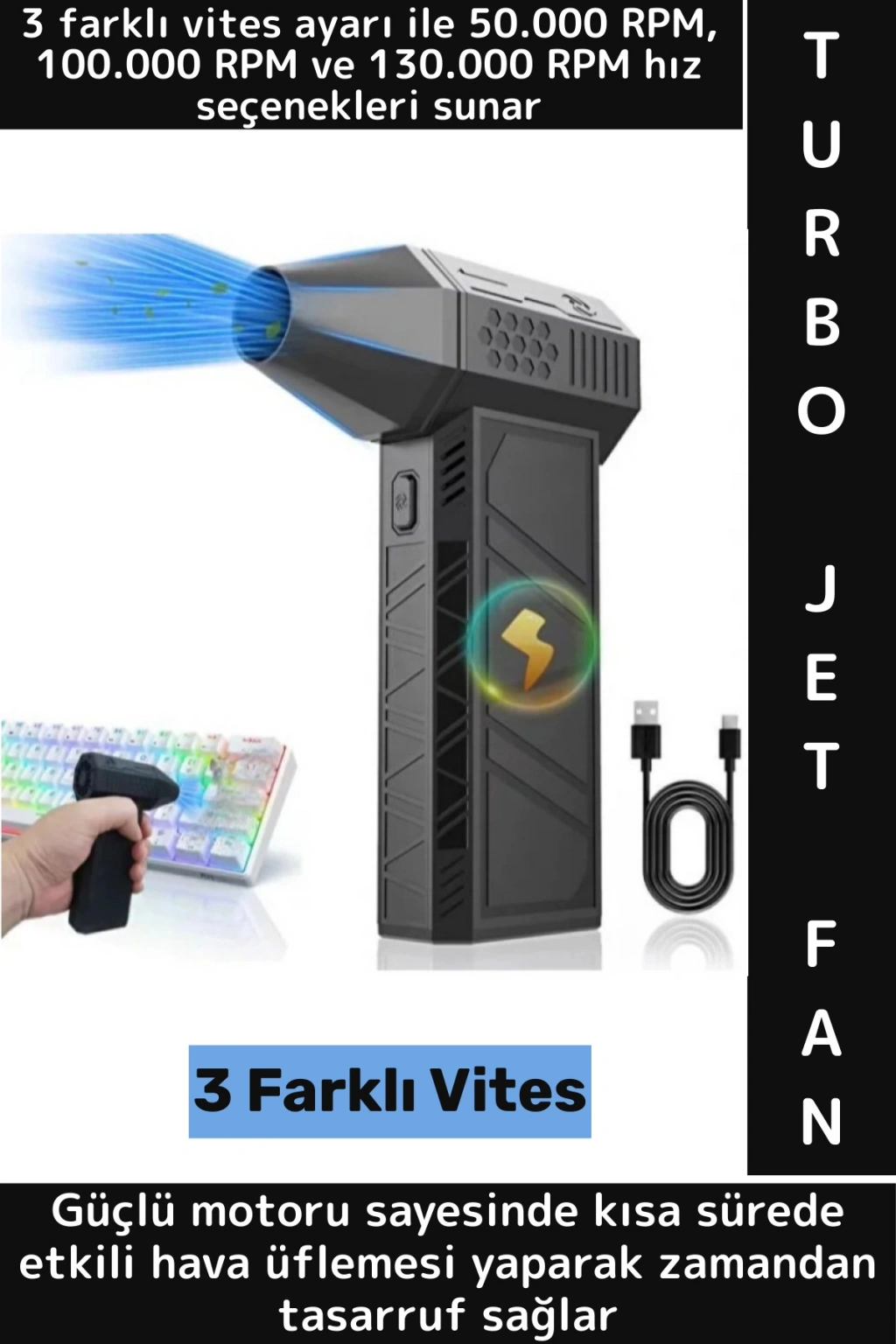 3 farklı vites ayarı ile 50.000 RPM, 100.000 RPM ve 130.000 RPM hız seçenekleri sunarak evcil hayvan kurutma, bilgisayar ve klavye temizliği ya da otomobil bakımı gibi farklı ihtiyaçlara cevap verir.