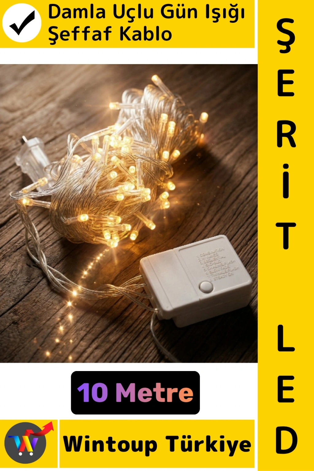 #LedIşık Dekoratif Ev Ofis Parti Yılbaşı Vitrin Oda Süsleme 100 Ledli Damla Uçlu 10 Metre Şerit Led