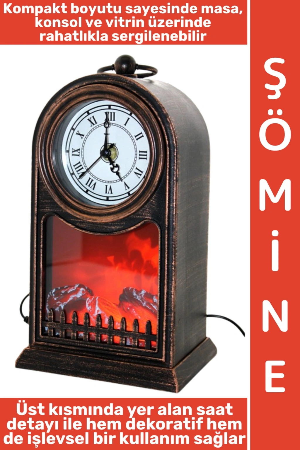 Dekoratif tasarımı ve ışıklı şömine efekti ile bulunduğu ortama sıcak bir atmosfer kazandırır. 27x15 cm ölçülerindeki ideal boyutu sayesinde masa, konsol ve vitrin üzerinde rahatlıkla sergilenebilir. Birinci derece kaliteli sert plastik malzemeden üretilmiş olan led ışıklı şömine, dayanıklı yapısı ile uzun süreli kullanım sunar. Üst kısmında yer alan saat detayı ile hem dekoratif hem de işlevsel bir kullanım sağlayan saatli şömine dekoru, klasik tasarımı sayesinde ev ve ofis ortamlarına uyum sağlar. Işıklı şömine efekti ile dikkat çeken dekoratif şömine saat, bulunduğu alanda nostaljik ve estetik bir görünüm oluşturur.