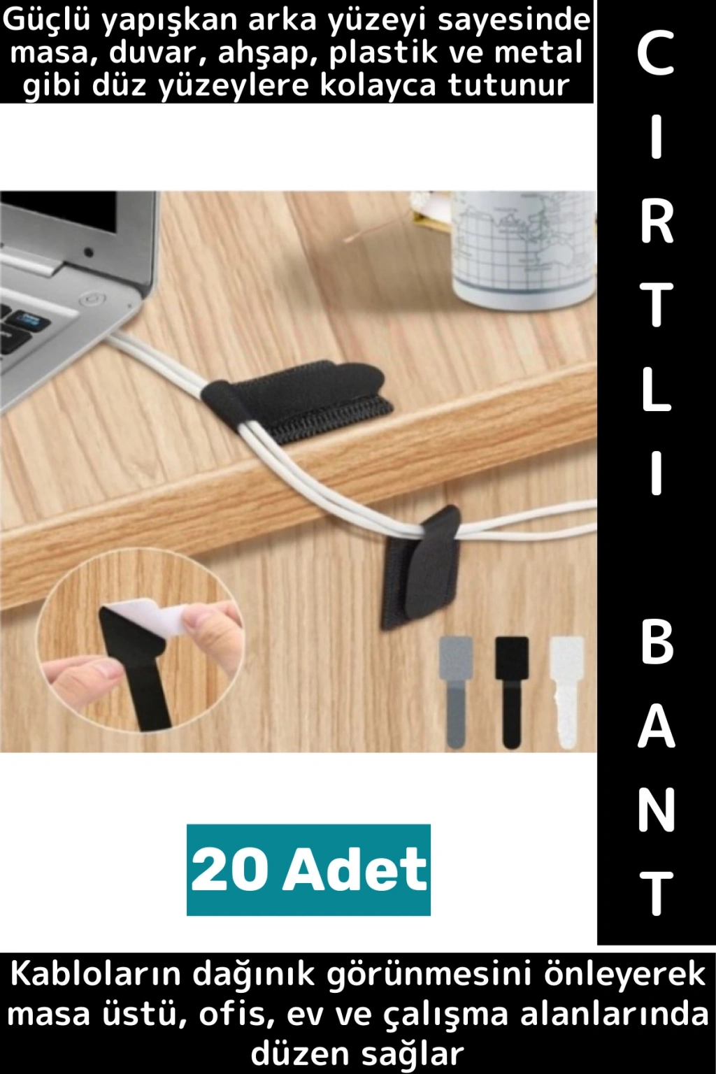 20 adet kendinden yapışkanlı cırt cırtlı bant, kablo düzenleme, sabitleme ve pratik montaj ihtiyaçları için ideal bir çözümdür. Güçlü yapışkan arka yüzeyi sayesinde masa, duvar, ahşap, plastik ve metal gibi düz yüzeylere kolayca tutunur ve ek yapıştırıcıya ihtiyaç duymaz. Kabloların dağınık görünmesini önleyerek masa üstü, ofis, ev ve çalışma alanlarında düzen sağlar. Defalarca açılıp kapatılabilen cırtlı yapısı sayesinde uzun süreli ve tekrar kullanılabilir kullanım sunar.Kompakt yapısı sayesinde hem ev elektroniği kablolarında hem de ofis ekipmanlarında pratik bir düzenleme çözümü sunar.