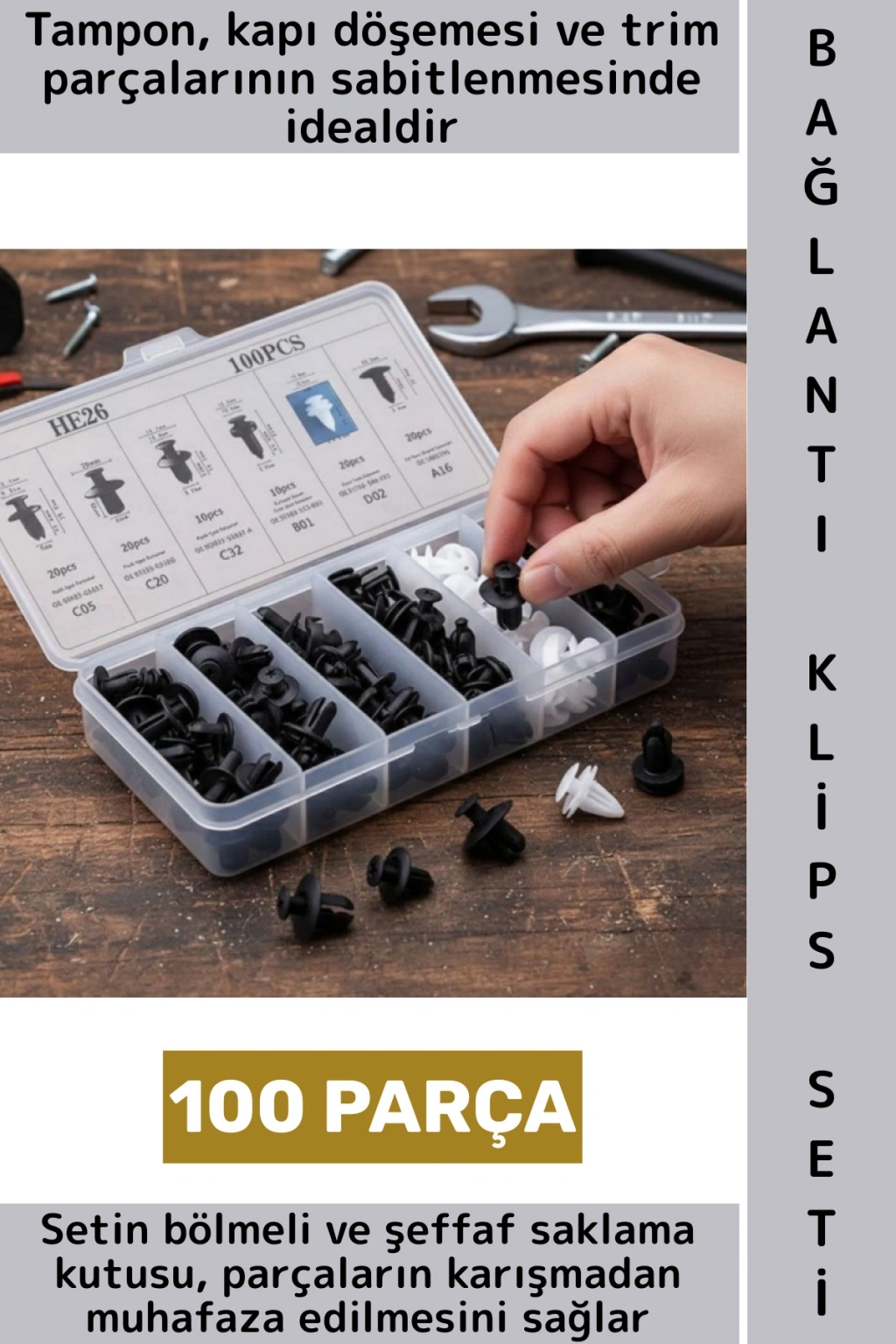 ÇOK AMAÇLI PLASTİK BAĞLANTI KLİPSİ SETİ 100 PARÇA