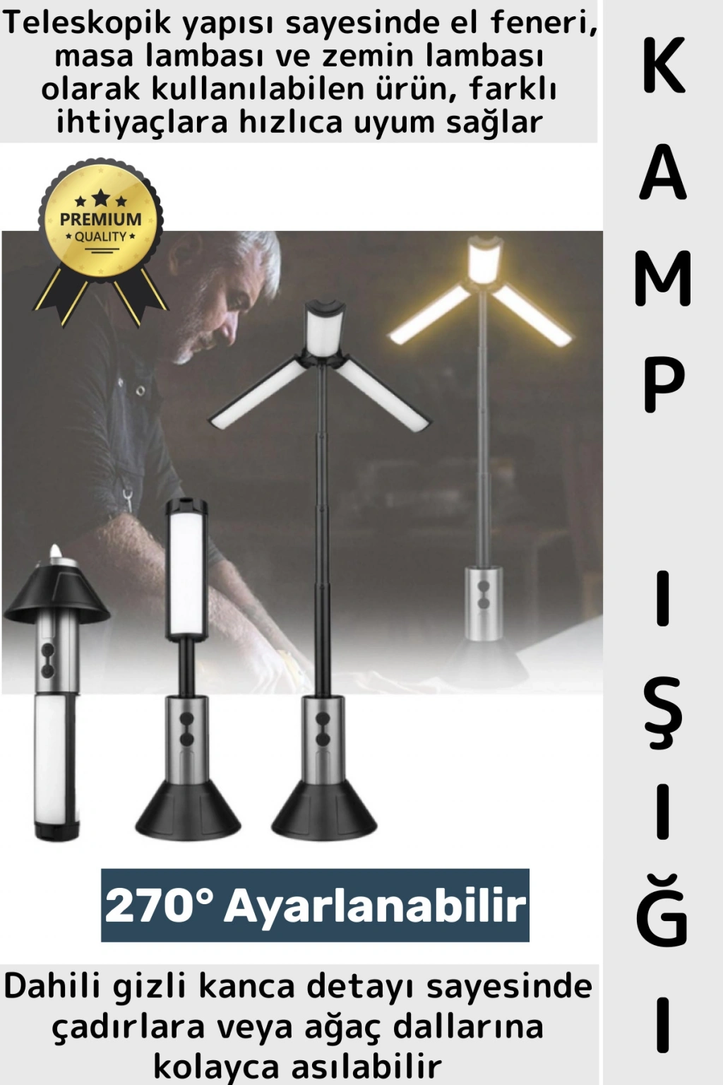 Outdoor Fener Masa Lambası Tasarımlı Piknik Çadıra Asılabilir Şarj Edilebilir Teleskopik Kamp Işığı