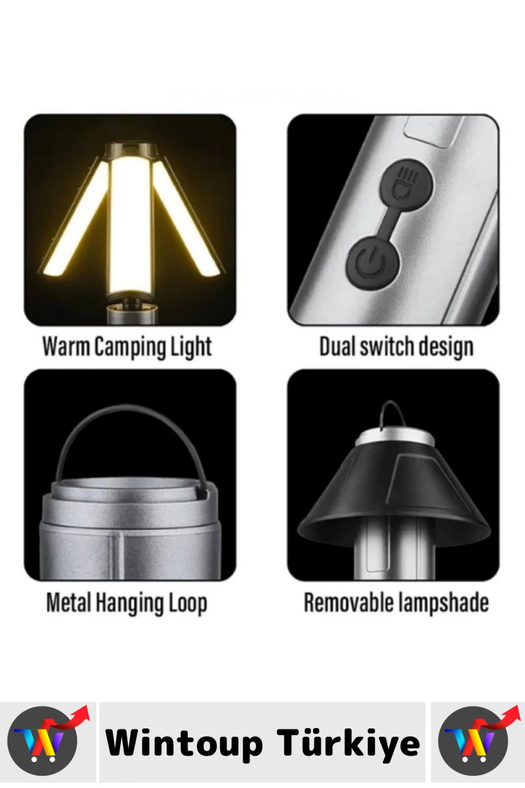 Premium 3 Modlu Suya Dayanıklı Kablosuz Askılı Kırılmaz Kamp Aydınlatma Şarjlı Taşınabilir LED Ampul