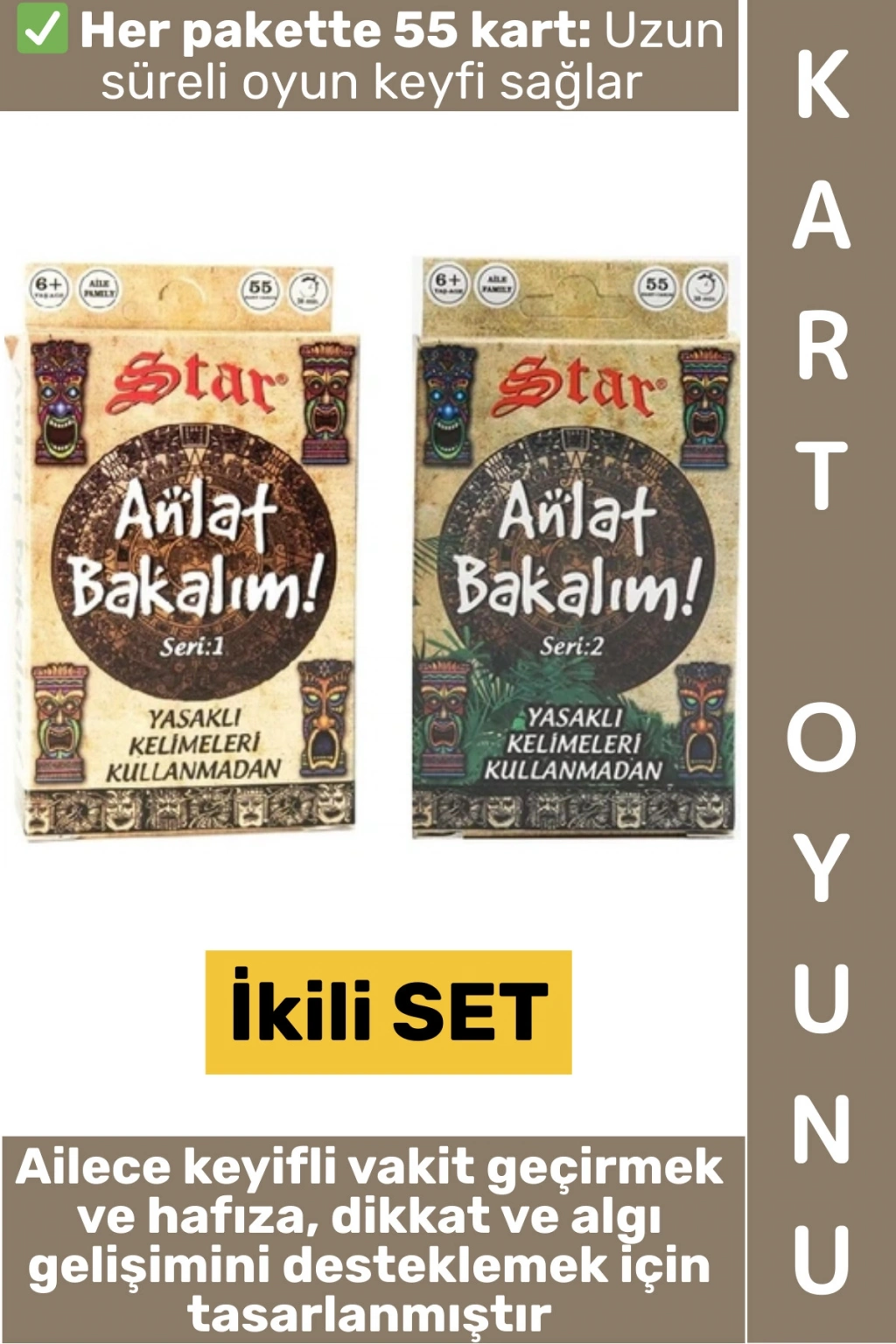 Anlat Bakalım Kelime Oyunu Seri:1 ve 2 - 2'li Set, ailece keyifli vakit geçirmek vehafıza, dikkat ve algı gelişimini desteklemekiçin tasarlanmış eğlenceli bir kutu oyunudur. Yasaklı kelimeleri kullanmadan kelimeleri anlatmaya çalışırken, hem çocuklar hem de yetişkinler için eğitici ve eğlenceli bir deneyim sunar.