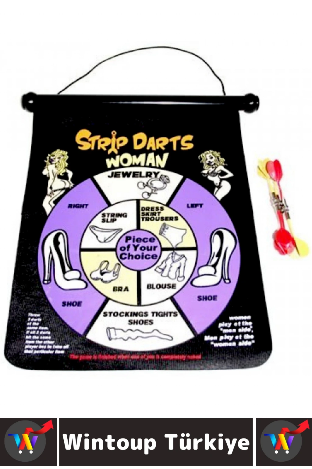 İki yüzeyi bulunan ve biri kadın, diğeri ise erkek kıyafetleri için tasarlanmış olan eğlenceli Striptiz Dart Oyununun manyetik oklarıyla hedeflediğiniz kıyafete nişan alıyor ve isabet ettirmeniz halinde ise partnerinizin o kıyafeti üzerinden çıkarmasını sağlıyorsunuz. İlk olarak rakibinin tüm kıyafetleri soyan kişi bu oyunun galibi sayılıyor.