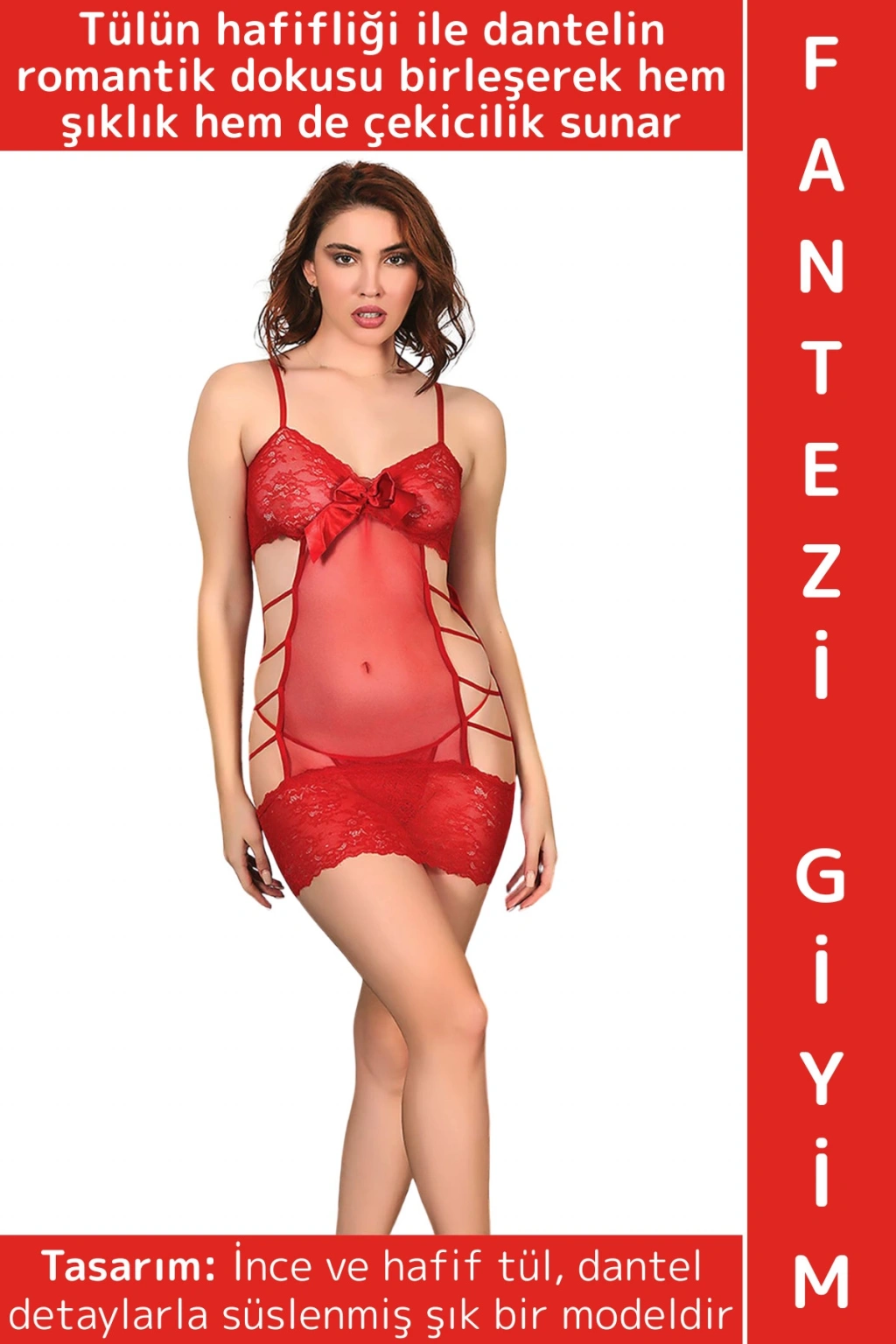 Özel Kreasyon Sevgililer Günü Yılbaşı Gece Sexy Çok Şık Rahat Dantelli Tül Kadın Fantezi Gecelik