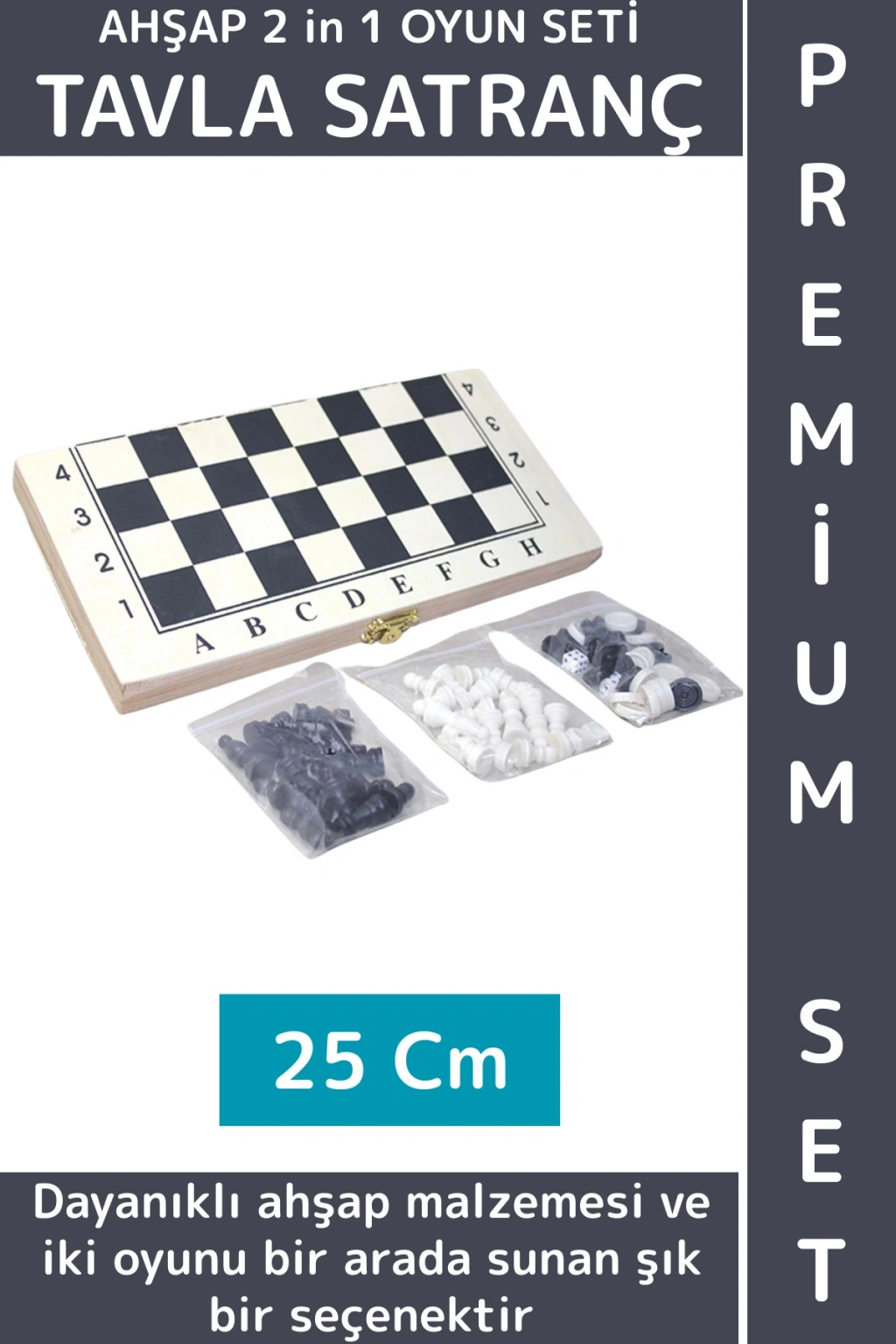 Premium Yüksek Kaliteli Ahşap Arkadaş Oyun Hediyelik Ahşap Tavla Satranç 2 in 1 Oyun Seti 30 X 15 Cm