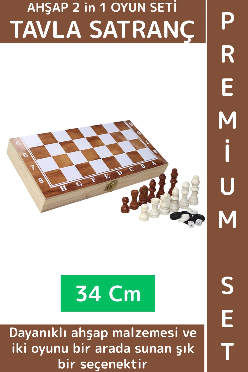 Premium Yüksek Kaliteli Ahşap Arkadaş Oyun Hediyelik Ahşap Tavla Satranç 2 in 1 Oyun Seti 30 X 15 Cm