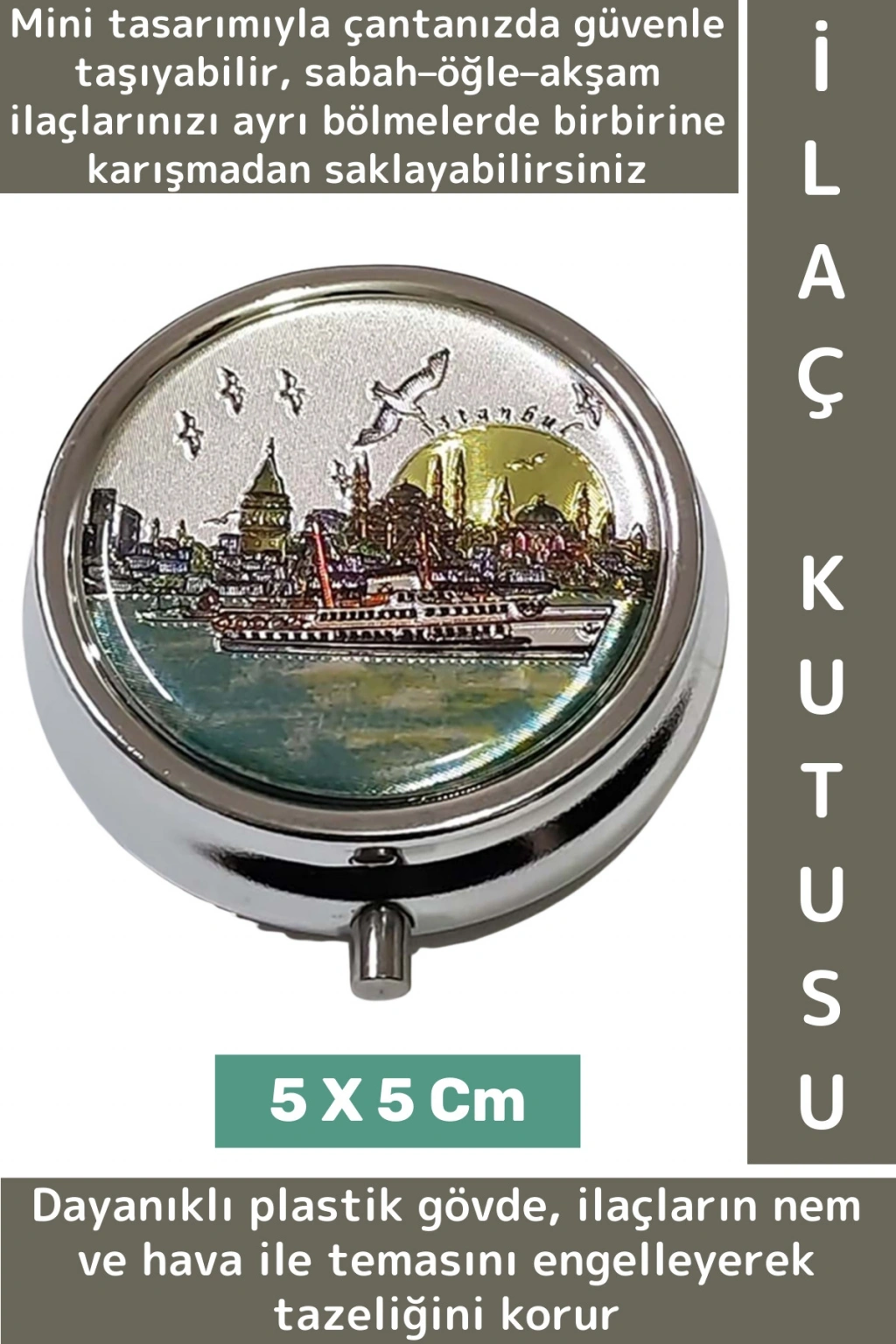 İstanbul temalı 3 bölmeli ilaç saklama kutusu, kompakt ve taşınabilir yapısıyla günlük ilaç düzeninizi kolaylaştırır. Çantanızda güvenle taşıyabilir, sabah–öğle–akşam ilaçlarınızı ayrı bölmelerde saklayabilirsiniz.