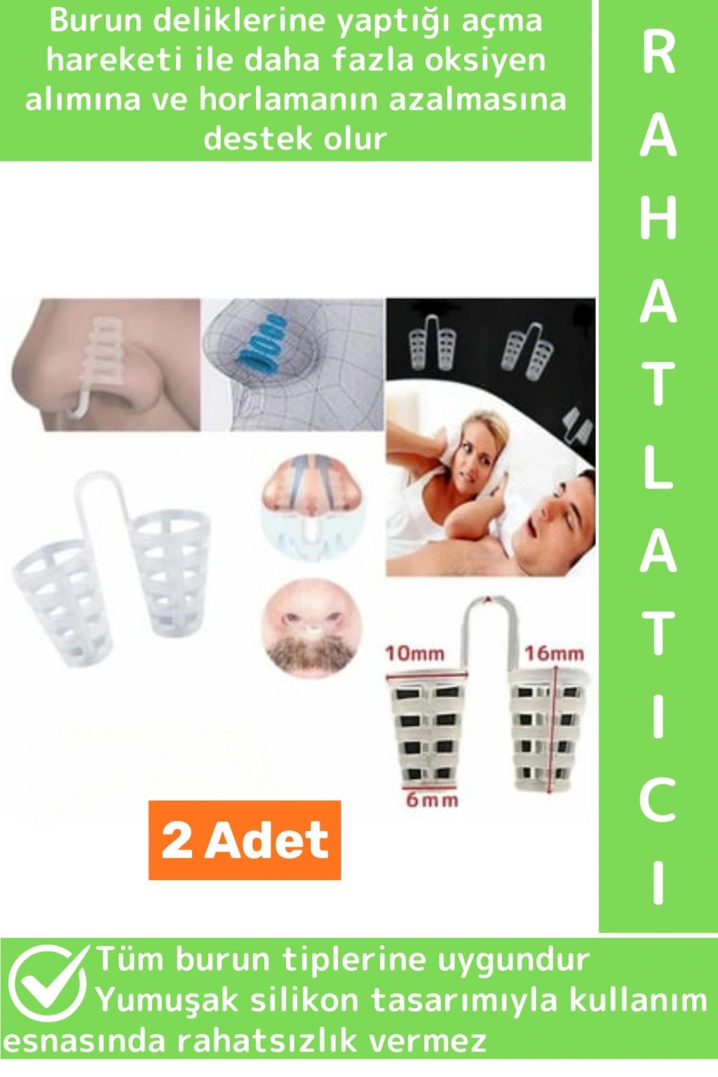 Horlama sorununuz var ise horlama önleyici burun aparatı ile bu sorunun çözümüne yardımcı olur.