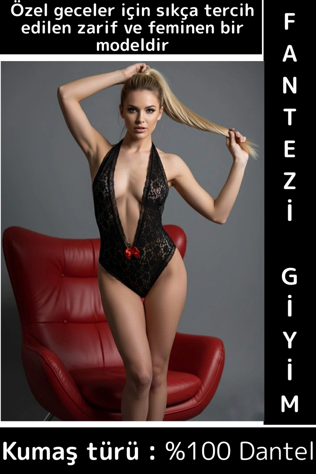 Özel Model Yılbaşı Sevgililer Günü Gündelik Gece Zarif Sexy Çok Şık Fantezi Kadın Dantelli Bodysuit
