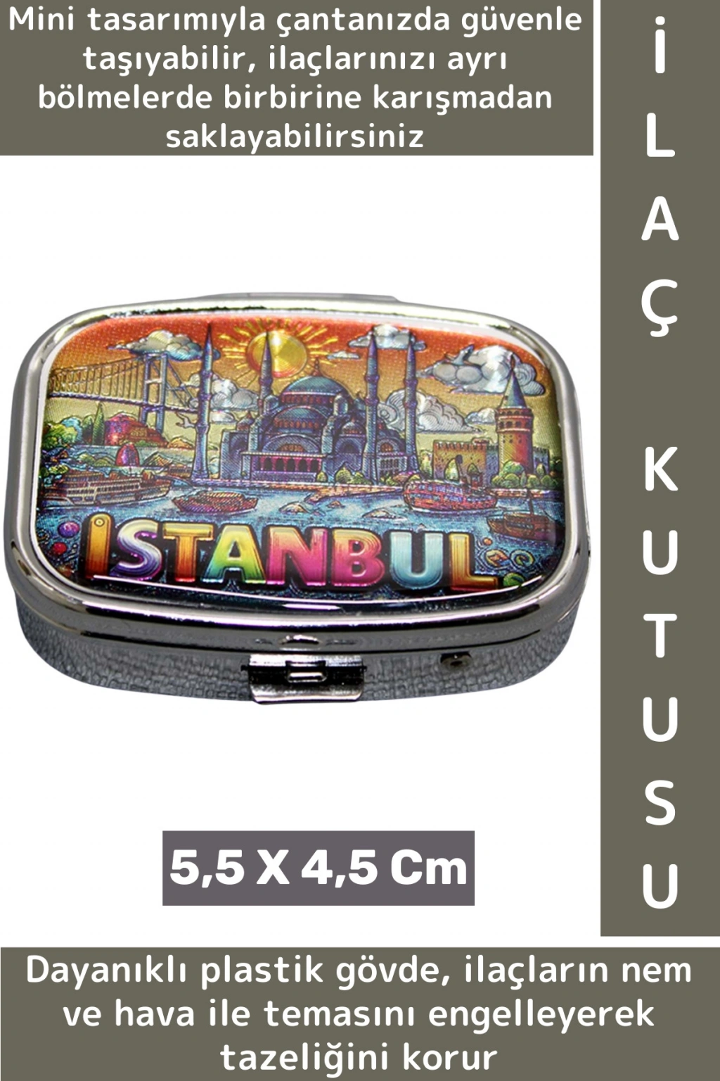 İstanbul temalı çift bölmeli ilaç saklama kutusu, kompakt ve taşınabilir yapısıyla günlük ilaç düzeninizi kolaylaştırır. Çantanızda güvenle taşıyabilir, ilaçlarınızı birbirine karışmadan ayrı bölmelerde saklayabilirsiniz.