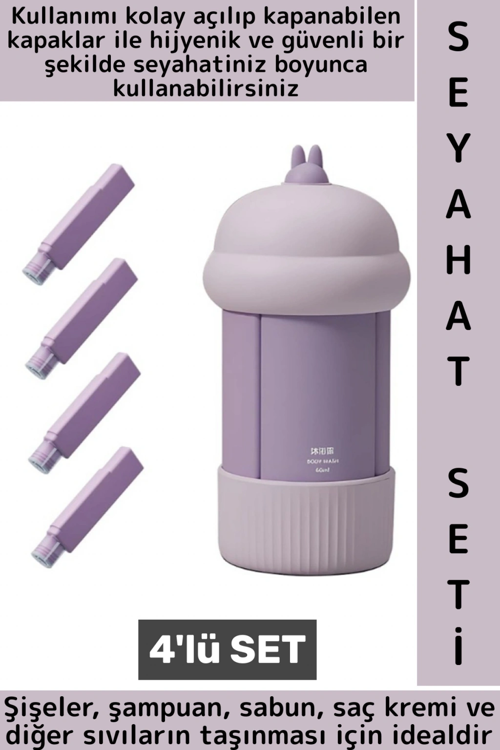 4'ü 1 arada seyahat şişesi seti, seyahat ederken rahatlıkla kullanılabilen pratik bir üründür. Şişeler, şampuan, sabun, saç kremi ve diğer sıvıların taşınması için idealdir. Kullanımı kolay açılıp kapanabilen kapaklar ile hijyenik ve güvenli bir şekilde seyahatiniz boyunca kullanabilirsiniz. Setin içeriği, kompakt yapısı sayesinde valizinizde fazla yer kaplamaz.