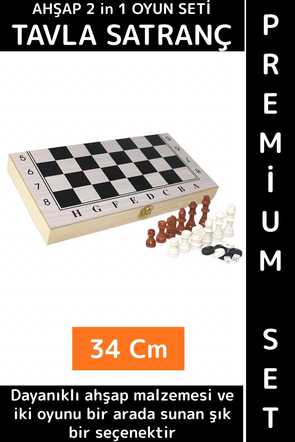 Özel Üretim Arkadaş Oyun Hediyelik Ahşap Kutulu Tavla Dama Satranç Kompakt Premium Oyun Seti 34 Cm