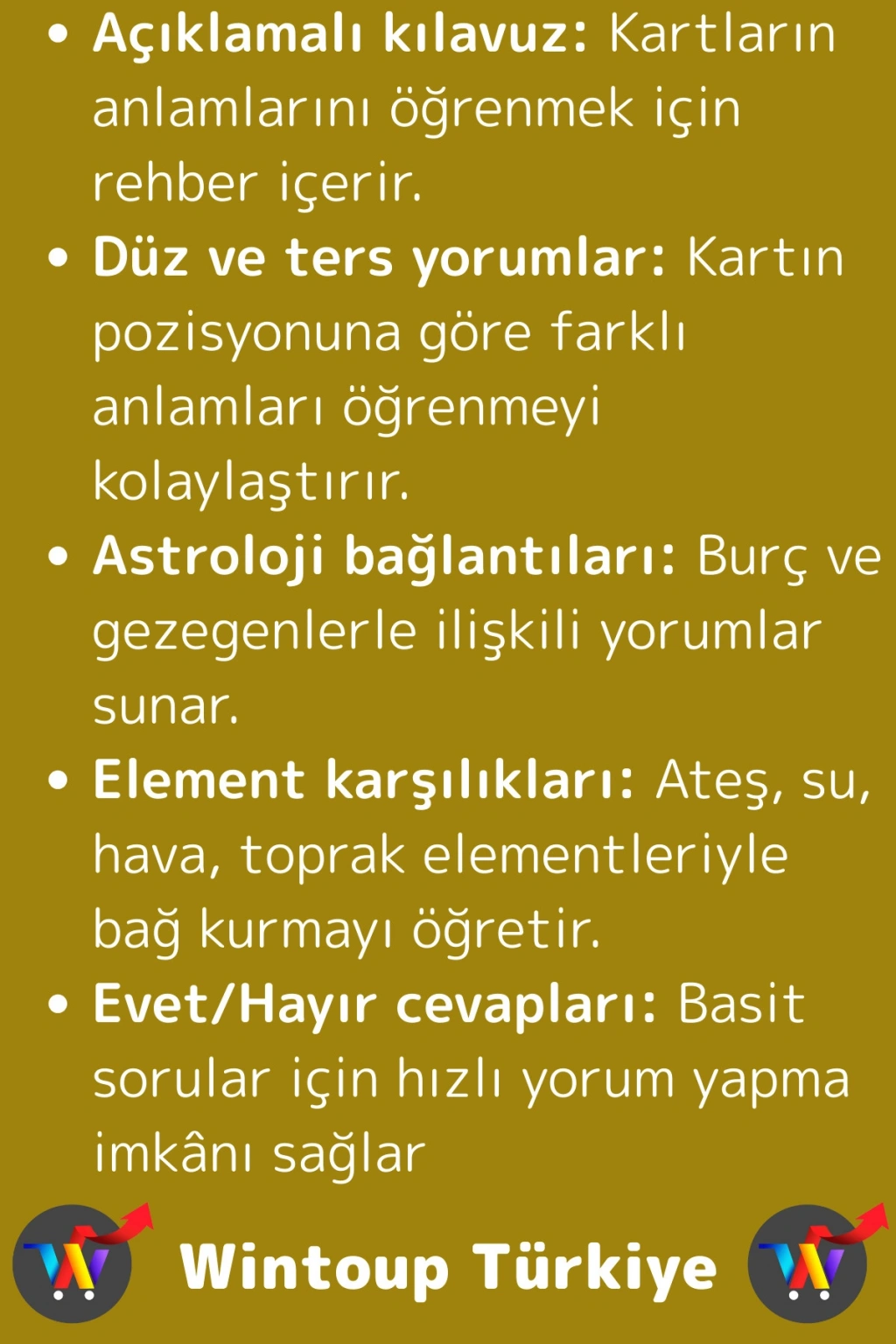 Düz ve ters yorumlar: Kartın pozisyonuna göre farklı anlamları öğrenmeyi kolaylaştırır.