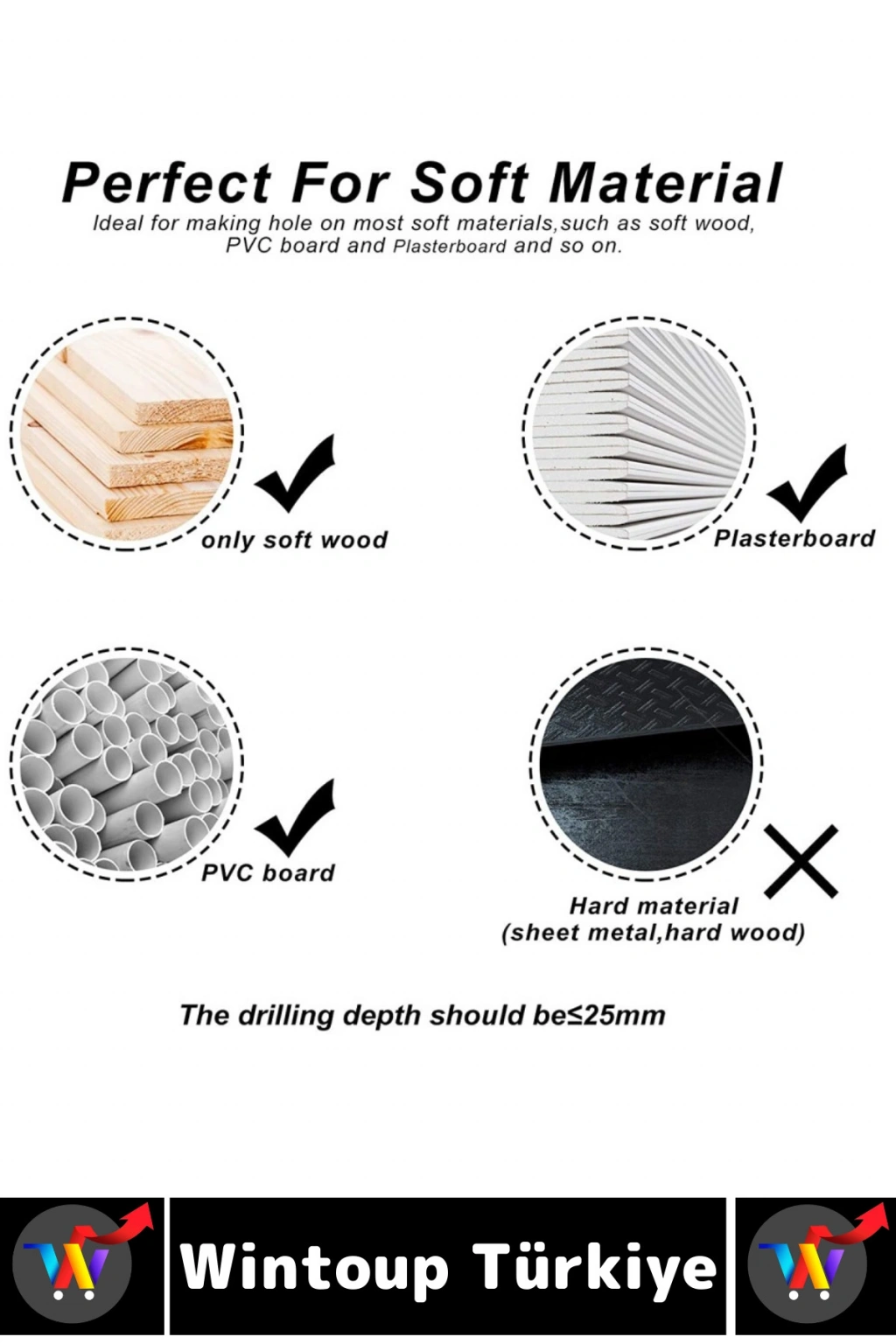 Kullanım alanları: Ahşap, alçıpan, MDF, plastik, ince metal (bronz, bakır, alüminyum)