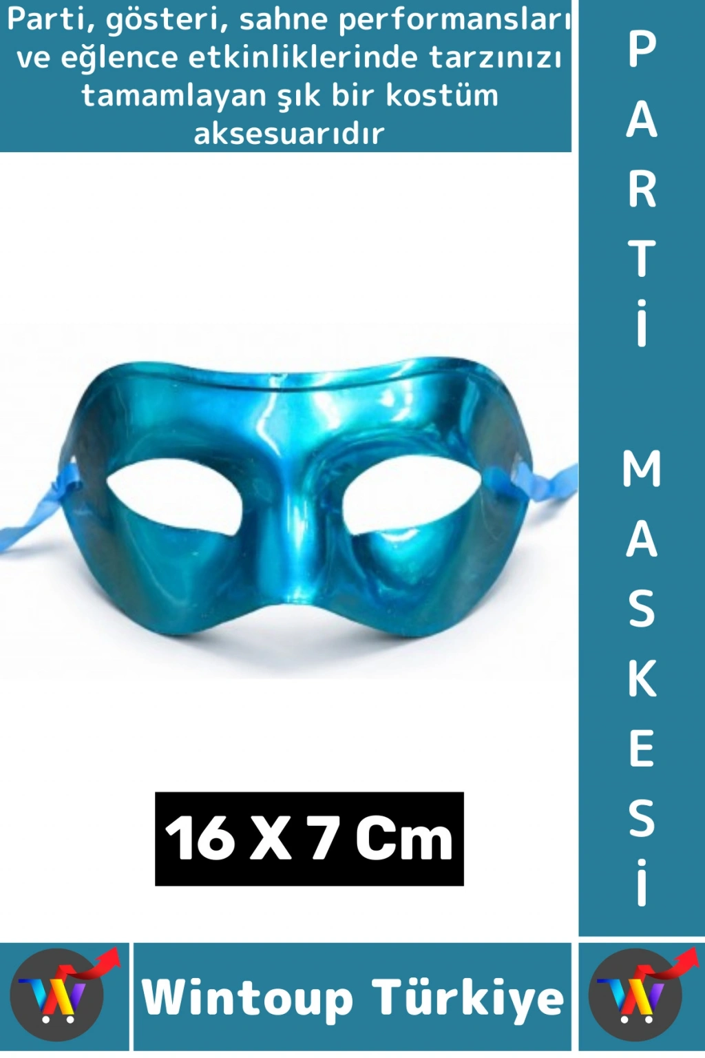Şık ve dikkat çekici tasarımıyla öne çıkan metalize yüz maskesi, parti ve kostüm etkinlikleri için ideal bir aksesuardır.; Parlak yüzeyi sayesinde ışık altında etkileyici bir görünüm sunar ve kombinlerinizi tamamlayan güçlü bir stil oluşturur.; Ergonomik yapısı sayesinde yüz formuna kolayca uyum sağlar ve rahat bir kullanım sunar.; Esnek bağlama sistemi sayesinde kolayca takılıp çıkarılabilir.; Hem kadın hem erkek kullanımı için uygundur.; Partilerde, gösterilerde, sahne performanslarında ve eğlence etkinliklerinde tarzınızı tamamlayan pratik ve şık bir kostüm aksesuarıdır.; Ürün Özellikleri Parlak metalize yüzey Hafif ve rahat kullanım Yüz formuna uyumlu tasarım Kadın ve erkek kullanımı için uygun Parti ve kostüm etkinlikleri için ideal aksesuar