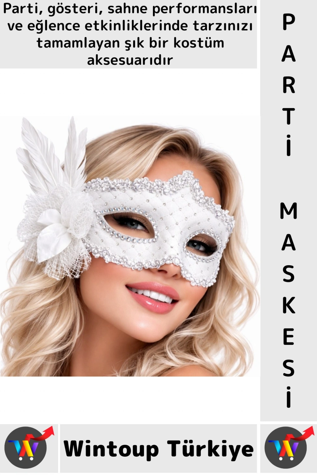 Zarif ve iddialı tasarımı ile balo, davet ve temalı organizasyonlarda dikkat çekici bir stil sunar. İşlemeli ve ışıltılı yüzey detaylarına sahip olan Venedik balo maskesi, yüz formuna uyum sağlayan estetik kesimi ile şık bir görünüm oluşturur. Yan kısmında yer alan hacimli tüy detayı ile zenginleştirilen tüylü lüks maske, maskeye gösterişli ve sofistike bir hava kazandırır. Göz çevresindeki dikkat çekici tasarımı ile öne çıkan siyah parti maskesi, maskeli balolar, özel davetler ve kostüm etkinliklerinde kombinlerin tamamlayıcı parçası olarak tercih edilebilir. Hafif yapısı sayesinde konforlu kullanım sunar ve farklı kostüm konseptleriyle uyum sağlar.