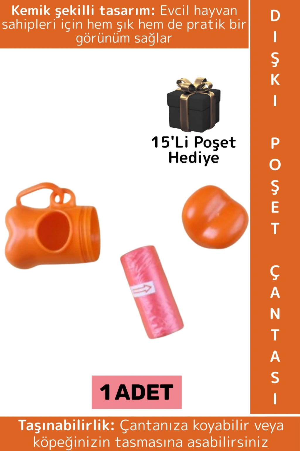 Evcil Hayvan Tasma Kemer Asılabilir Pratik Kedi Köpek Hijyenik Dışkı Poşet Çanta 15'li Poşet Hediye