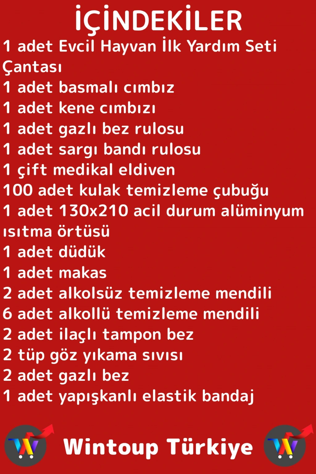 Dayanıklı malzemeden üretilmiş turuncu fermuarlı taşıma çantası sayesinde kolay taşınır ve her an erişilebilir olur. Çanta içerisinde steril gazlı bezler, alkol pedleri, temizleme mendilleri, elastik bandaj, makas, cımbız, pamuklu çubuklar, medikal bantlar, acil durum battaniyesi, yara temizleme solüsyonu ve acil durumlarda kullanılabilecek yardımcı ekipmanlar bulunur. Ayrıca, küçük kazalarda hızlı müdahale etmenize imkân tanıyacak portatif tasarımı sayesinde evcil dostunuzun güvenliği her zaman ön planda tutulur.