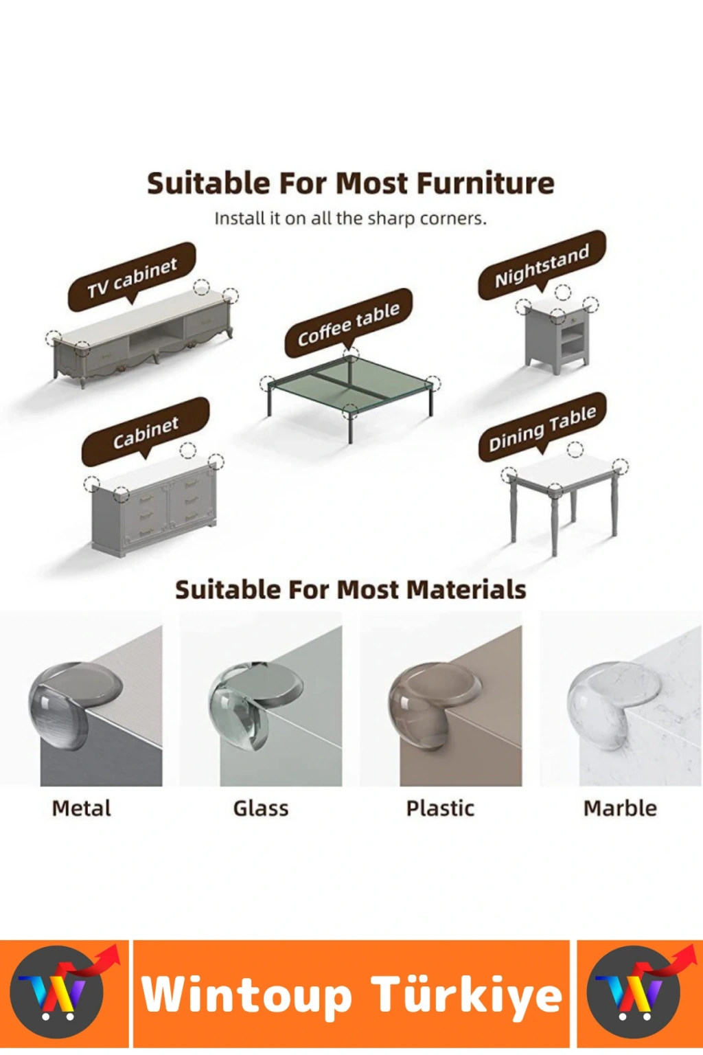 Pratik Çocuk Bebek Güvenlik Masa Komodin Mobilya Çarpma Önleyen Silikon Köşe Kenar Koruyucu 20 Adet