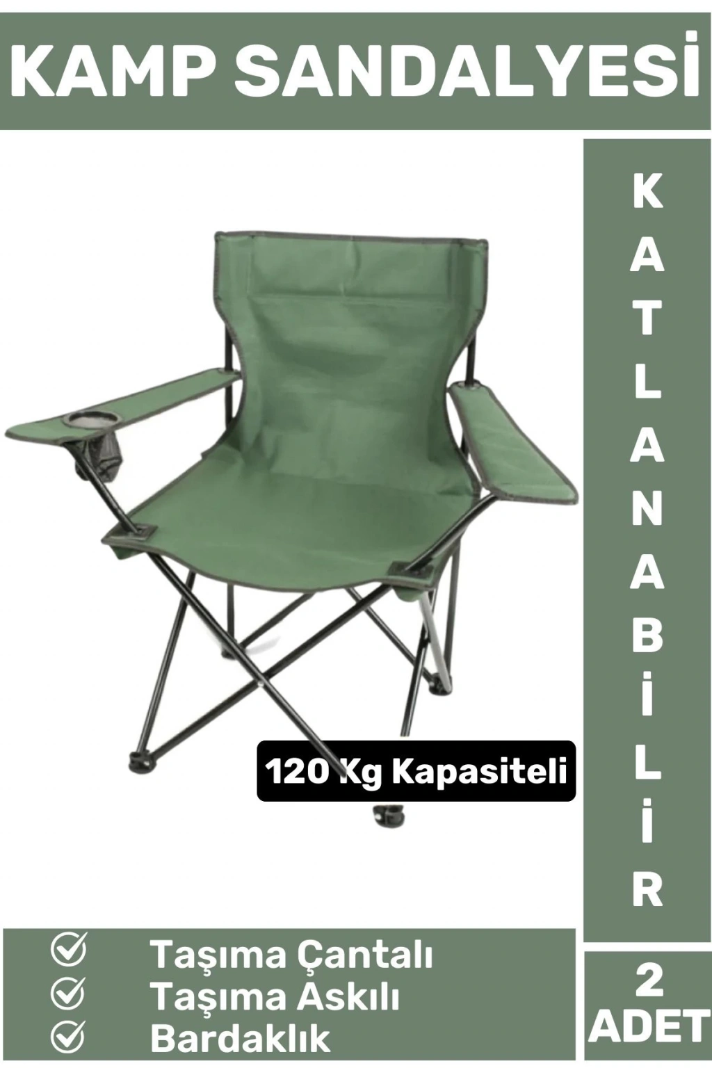 Premium 120 Kg Dayanıklı Çantalı Taşıma Askılı Bardaklık Balık Piknik Sahil Kamp Sandalyesi 2 Adet