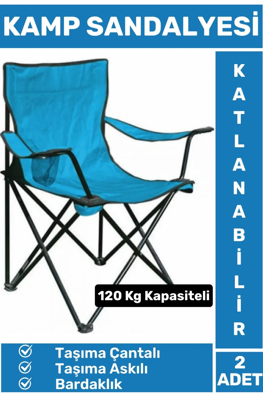 Premium 120 Kg Dayanıklı Çantalı Taşıma Askılı Bardaklık Balık Piknik Sahil Kamp Sandalyesi 2 Adet