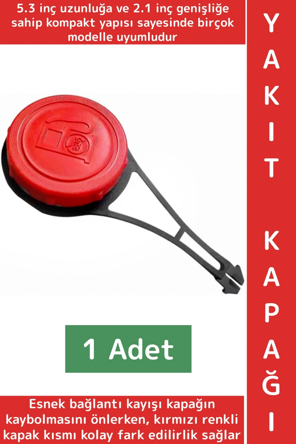 Esnek bağlantı kayışı kapağın kaybolmasını önlerken, kırmızı renkli kapak kısmı kolay fark edilirlik sağlar. Kullanıcı dostu tasarımı sayesinde kolayca takılıp çıkarılabilir. Yüksek sıcaklık, yağ ve yakıt buharına karşı dayanıklı olması uzun ömürlü kullanım sunar. Oto, bahçe ve tarım makinelerinde güvenli yakıt saklama çözümü olarak kullanılabilir.