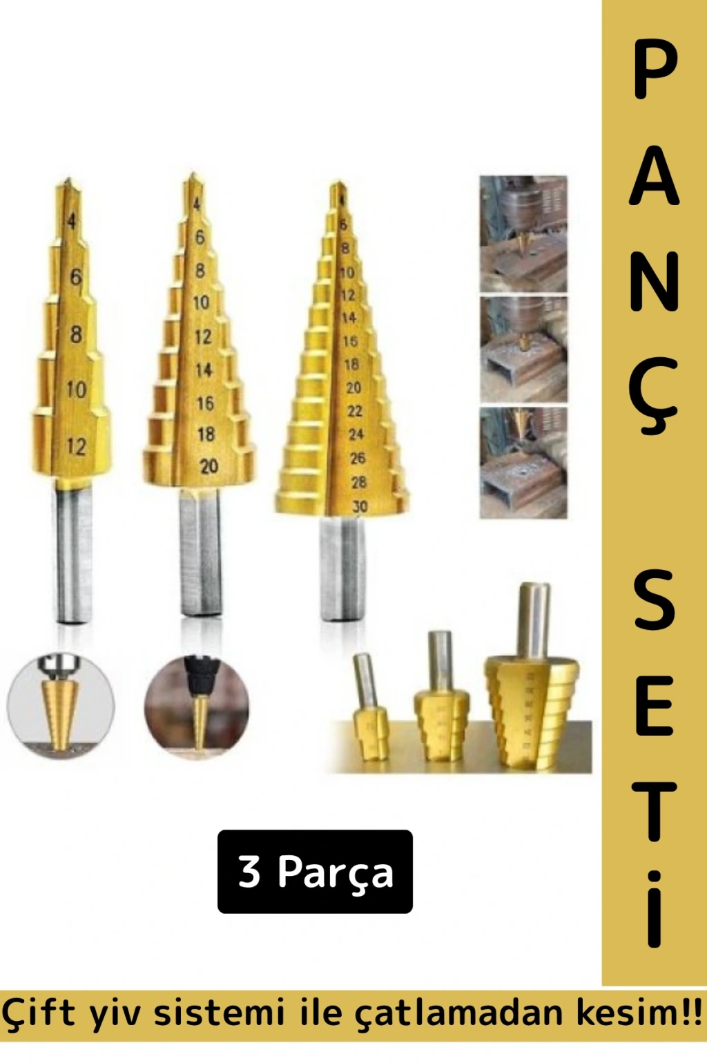 Premium Dayanıklı Çift Yiv Sistemli Çatlamadan Kesim Sac Delme Kademeli Matkap Ucu Panç Seti 3 Parça