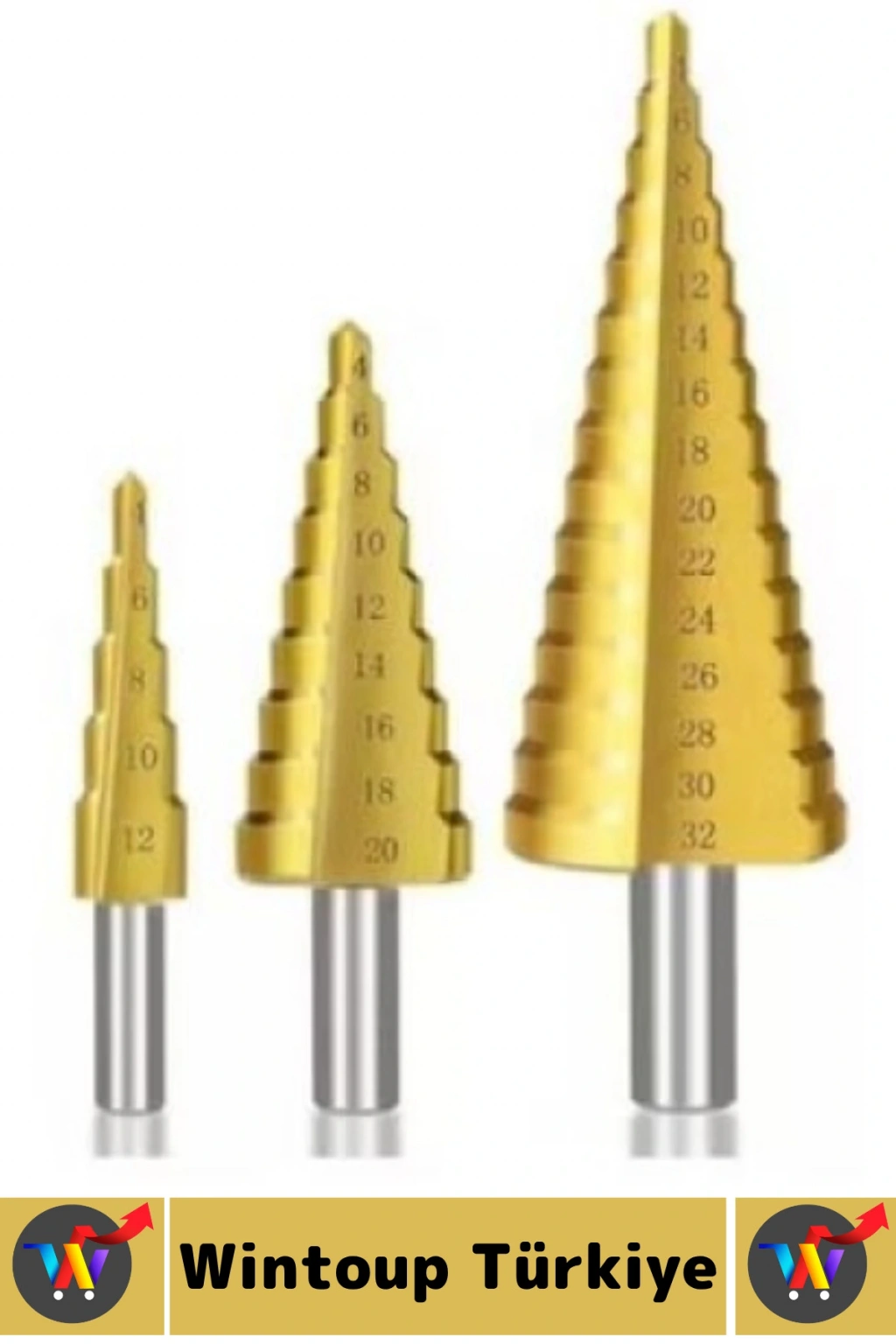 3 Parça Yüksek Hız Çeliğinden mamul kademeli matkap uç seti.
