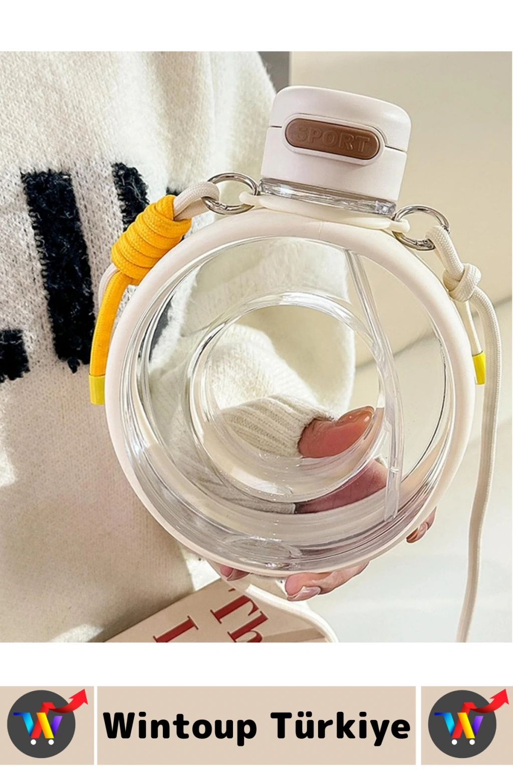 Premium Ergonomik Sızdırmaz Kapak Omuz Askılı Spor Okul Ofis Çok Şık Estetik Su Matarası 750 ML