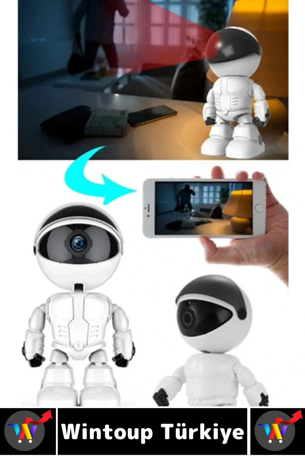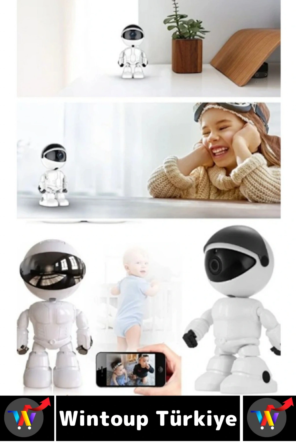 Robot görünümlü Wi-Fi bebek kamerası, modern tasarımı ve gelişmiş teknolojisi ile hem şık hem de işlevsel bir güvenlik çözümü sunar. 2.4 GHz Wi-Fi bağlantısı sayesinde akıllı telefonlarla uyumlu çalışarak uzaktan izleme imkânı sağlar.